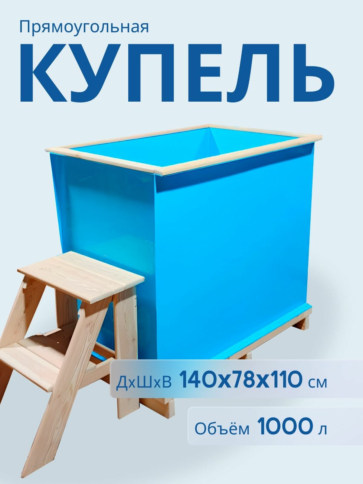 | Дополнительная информация | Купель прямоугольная из полипропилена 140х78х110 см - 1 шт, сидение из дерева 1 шт, приступок внешний из дерева 2 шт, оформление борта деревянными элементами 1 шт, слив с пробкой 1шт. |