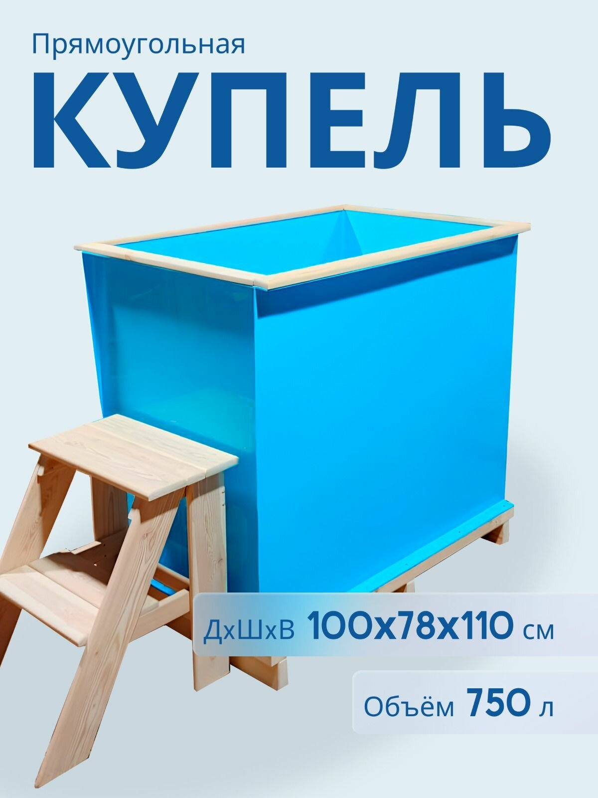 Купель прямоугольная для бани из полипропилена, из пластика, банный чан, бассейн для купания взрослых и детей, емкость для воды, размер 100х78х110 см интересное:
