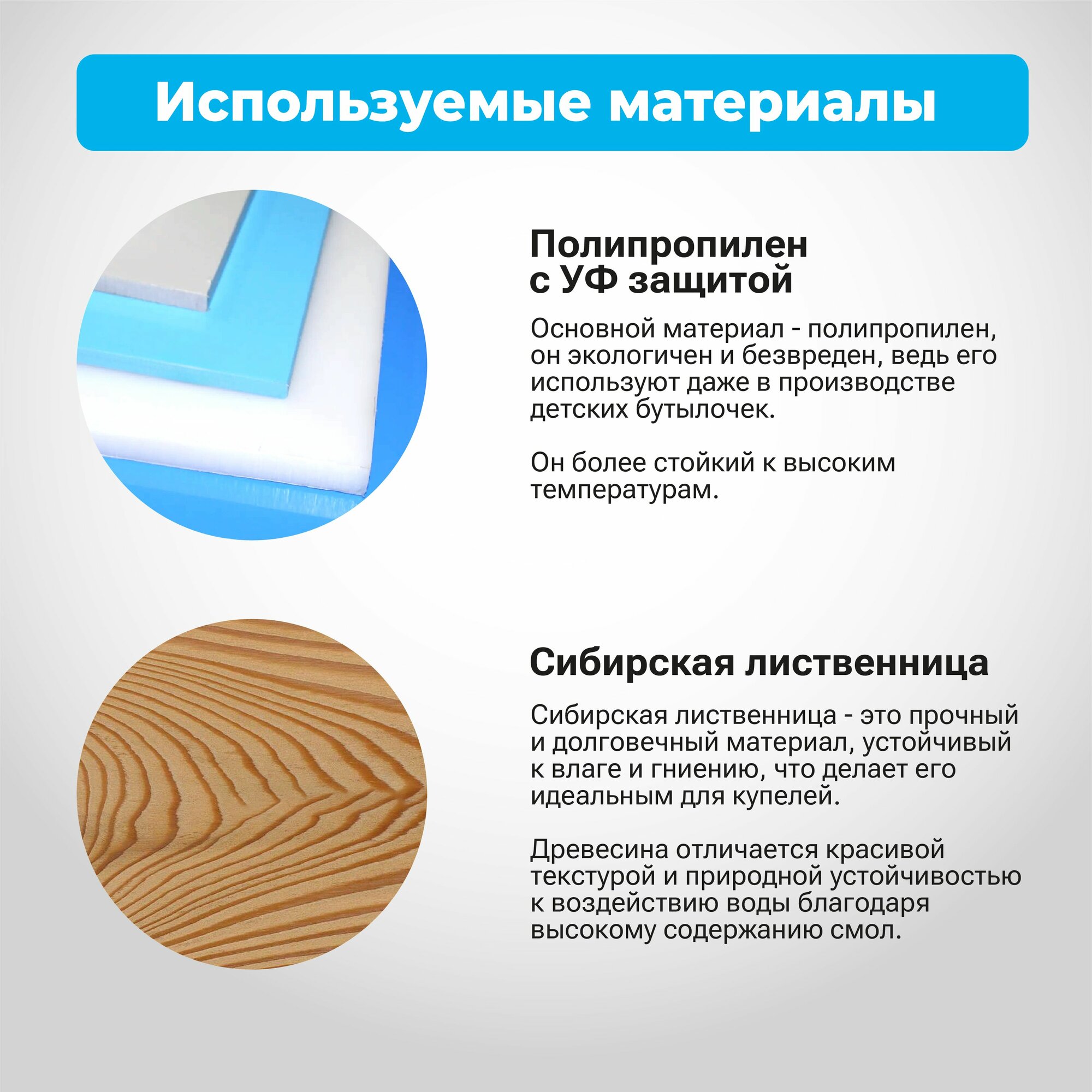 Купель прямоугольная для бани из дерева лиственница, полипропилена, пластика, банный чан, бассейн для купания взрослых и детей, емкость для воды, размер 100х78х110 см интересное: