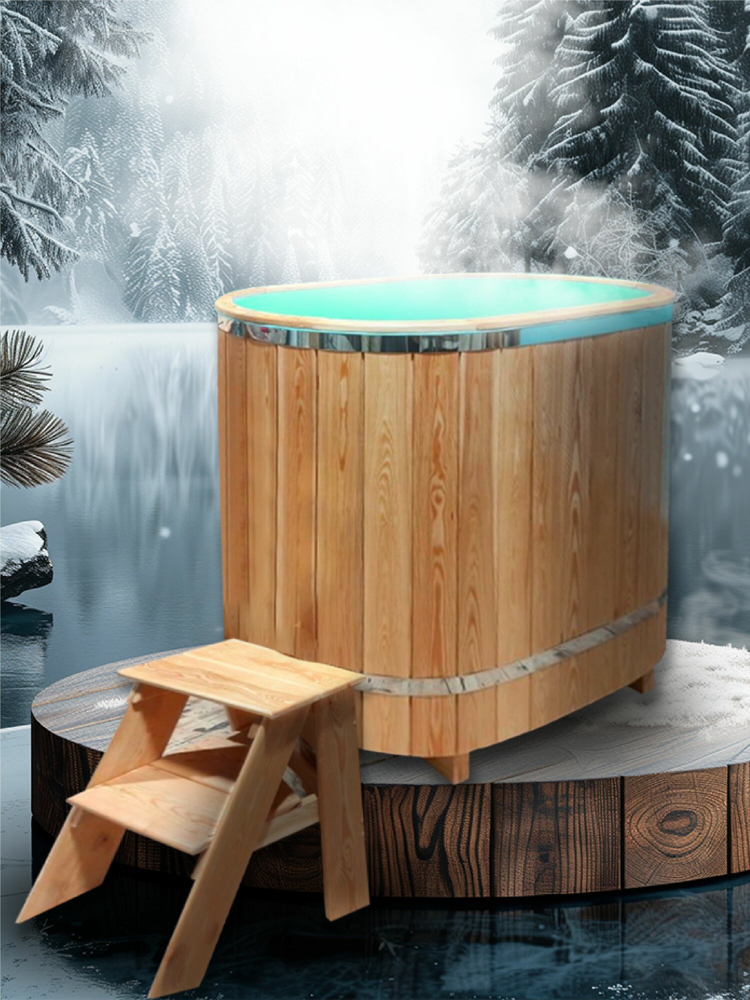Купель овальная для бани из дерева лиственница, полипропилена, пластика, банный чан, бассейн для купания взрослых и детей, емкость для воды, размер 140х78х110 см