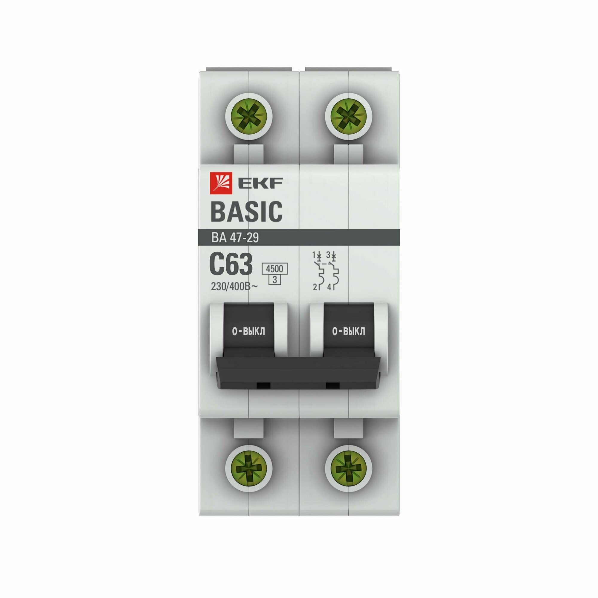 Выключатель автоматический двухполюсный ВА 47-29 63А C 4,5кА Basic | код. mcb4729-2-63C | EKF ( 1шт. )