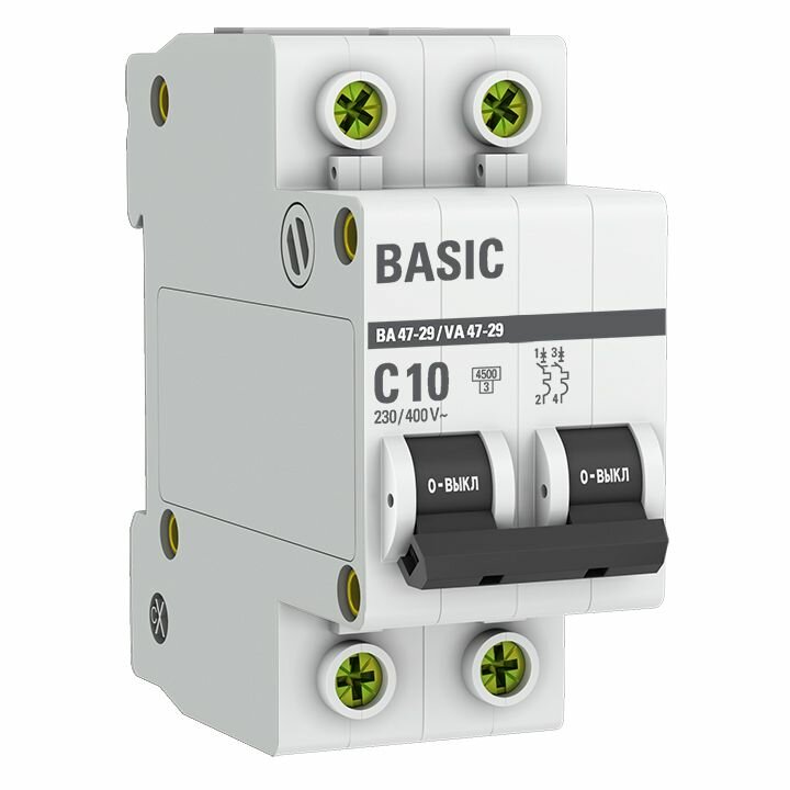 Автоматический выключатель 2P 10А (C) 4,5кА ВА 47-29, EKF Basic