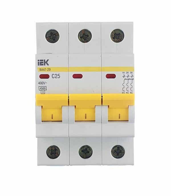 Выключатель автоматический IEK ВА47-29, 3Р, 25 А, 4,5 кА, тип С
