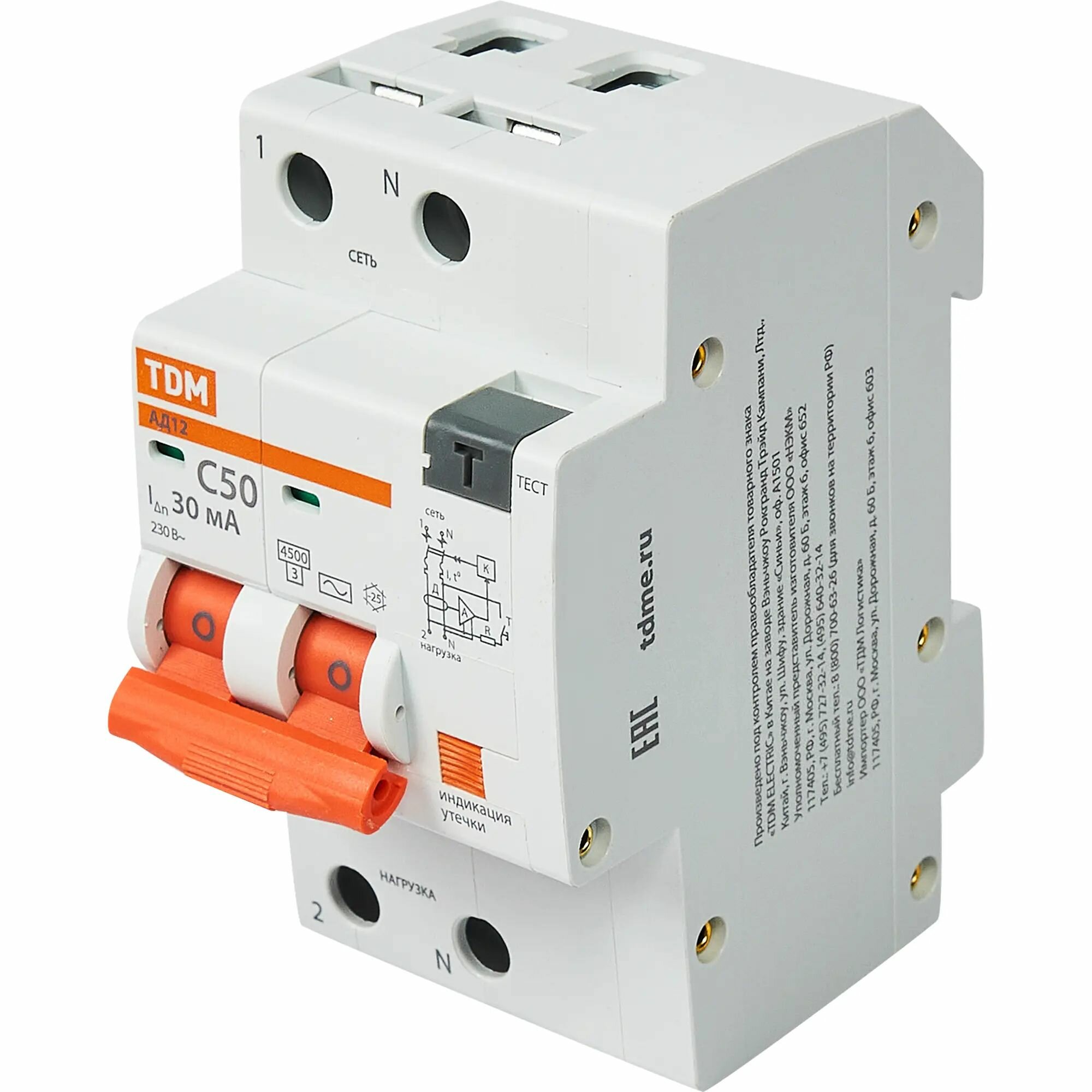 Диф. автомат АД12 2Р 50А 30мА TDM интересное: