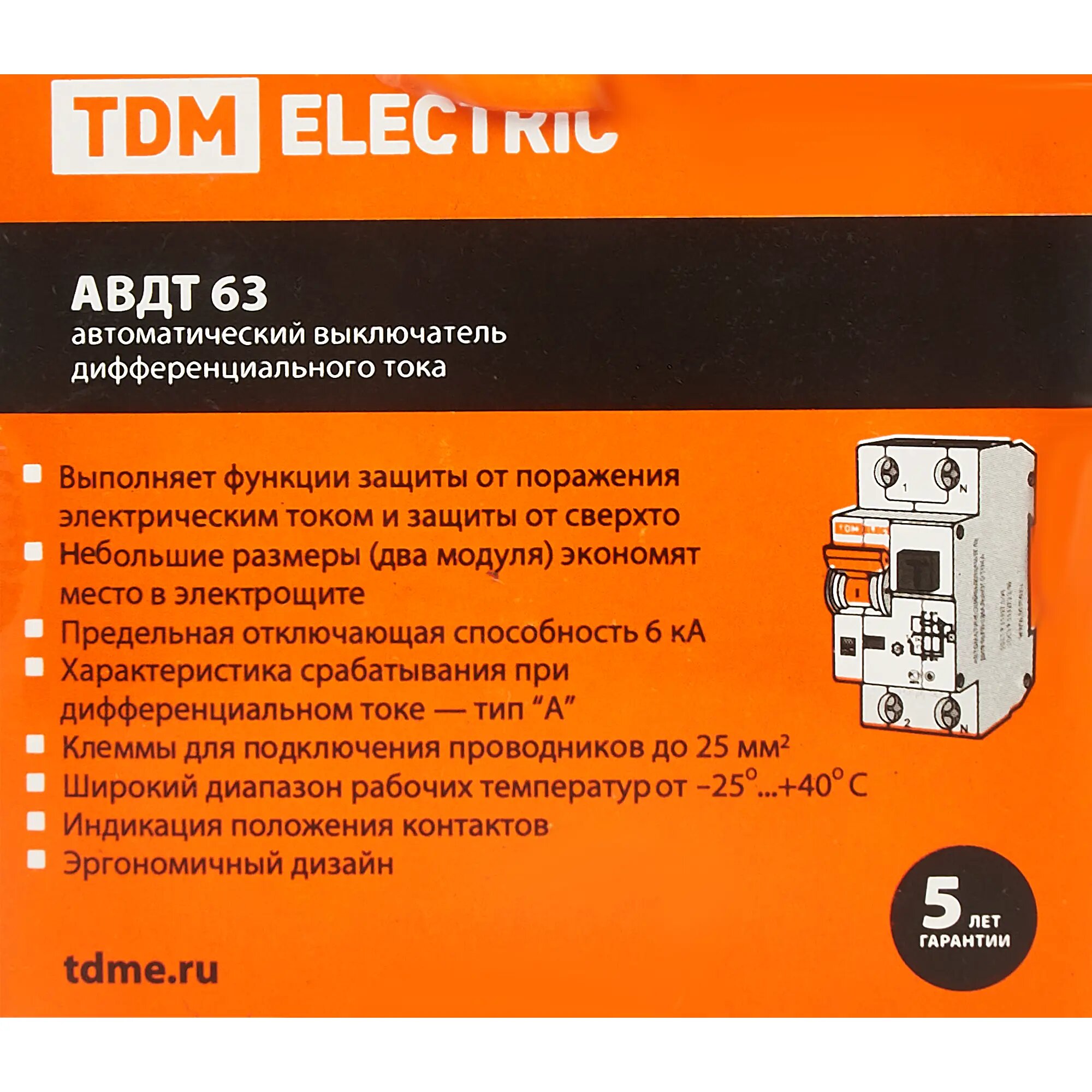 Дифференциальный автомат TDM АВДТ 63 2Р(1Р+N) C10 30мА 6 кА тип A