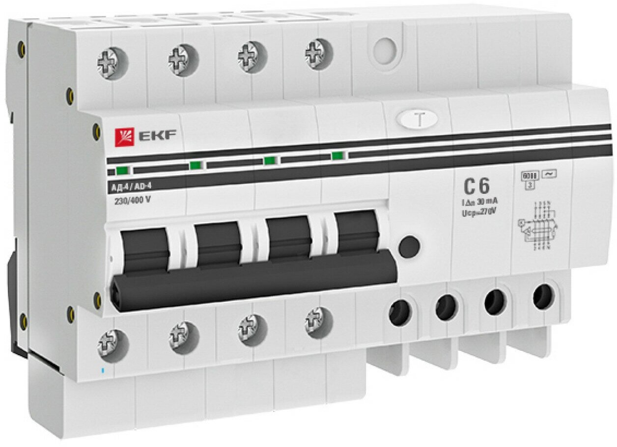 Купить Дифференциальный автомат АД-4 6А- 30мА (хар. C, AC, электронный) 6кА EKF PROxima