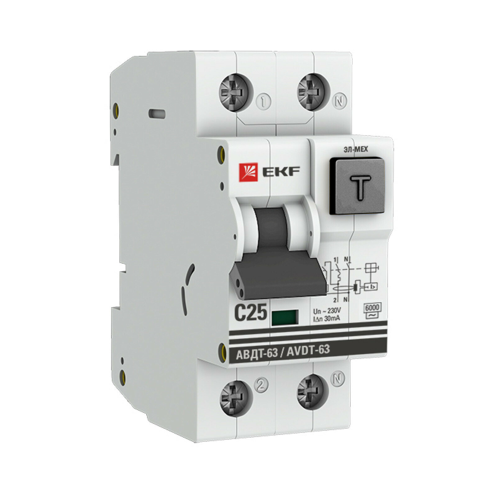 Выключатели дифференцальные модульные EKF Выключатель автоматический дифференциального тока 25А 30мА тип AC 6кА АВДТ-63 электромех. PROxima