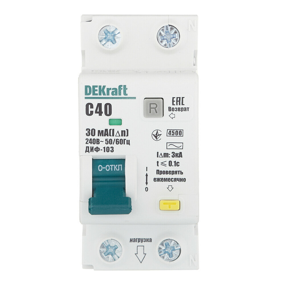 Выключатель автоматический дифференциального тока АВДТ 1Р+N 40А 30мА тип AC х-ка C ДИФ-103 4.5кА | код 16056DEK | DEKraft ( 1шт. )
