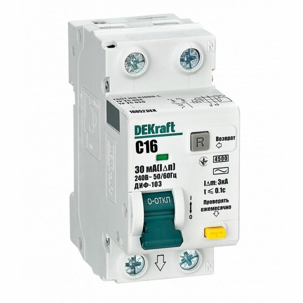 DEKraft АВДТ 1Р+N 16А 30мА тип AC х-ка C ДИФ-103 4.5кА