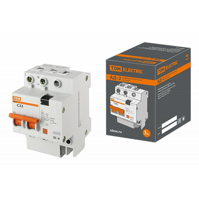 Купить Дифференциальный автомат АД-2 2Р, C32, 30 мА, 4,5 кА, тип АС, TDM, цена за 1 шт
