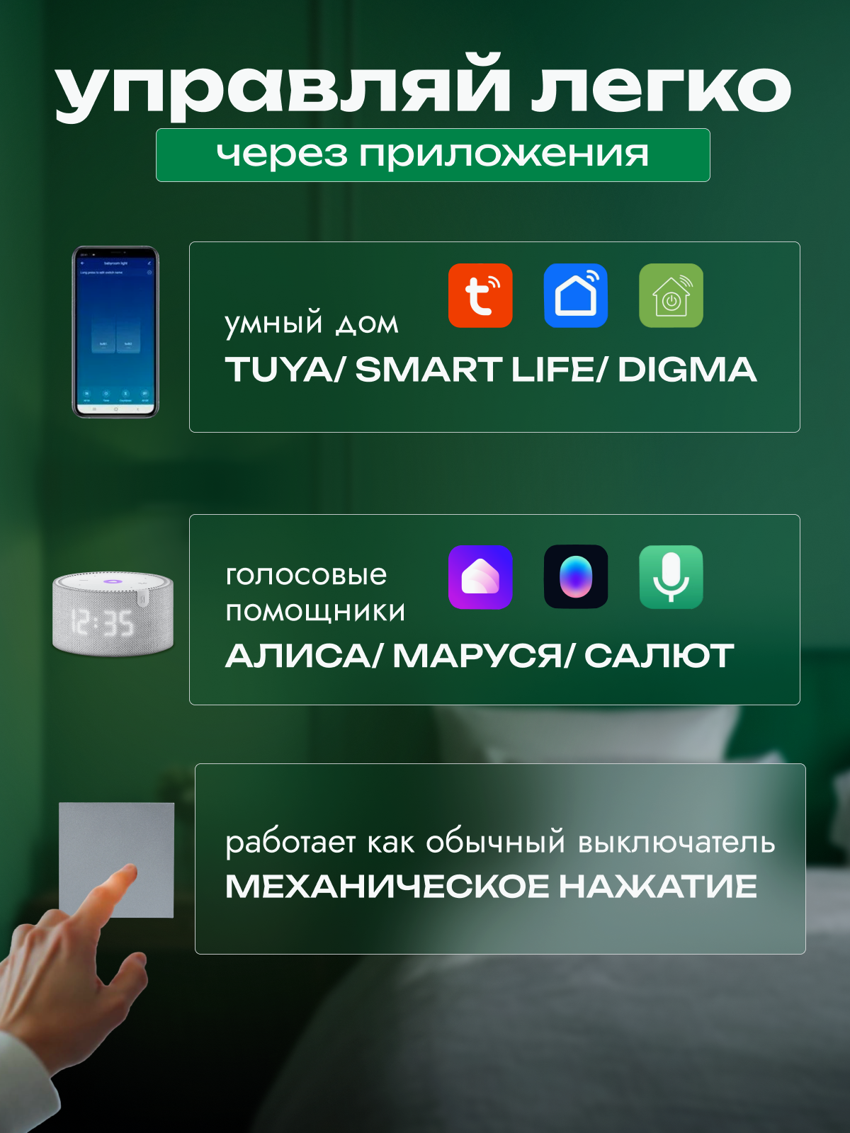 | Экосистема Умного дома | Amazon Alexa / DIGMA SmartLife / Google Home / Smart Life / Tuya Smart |