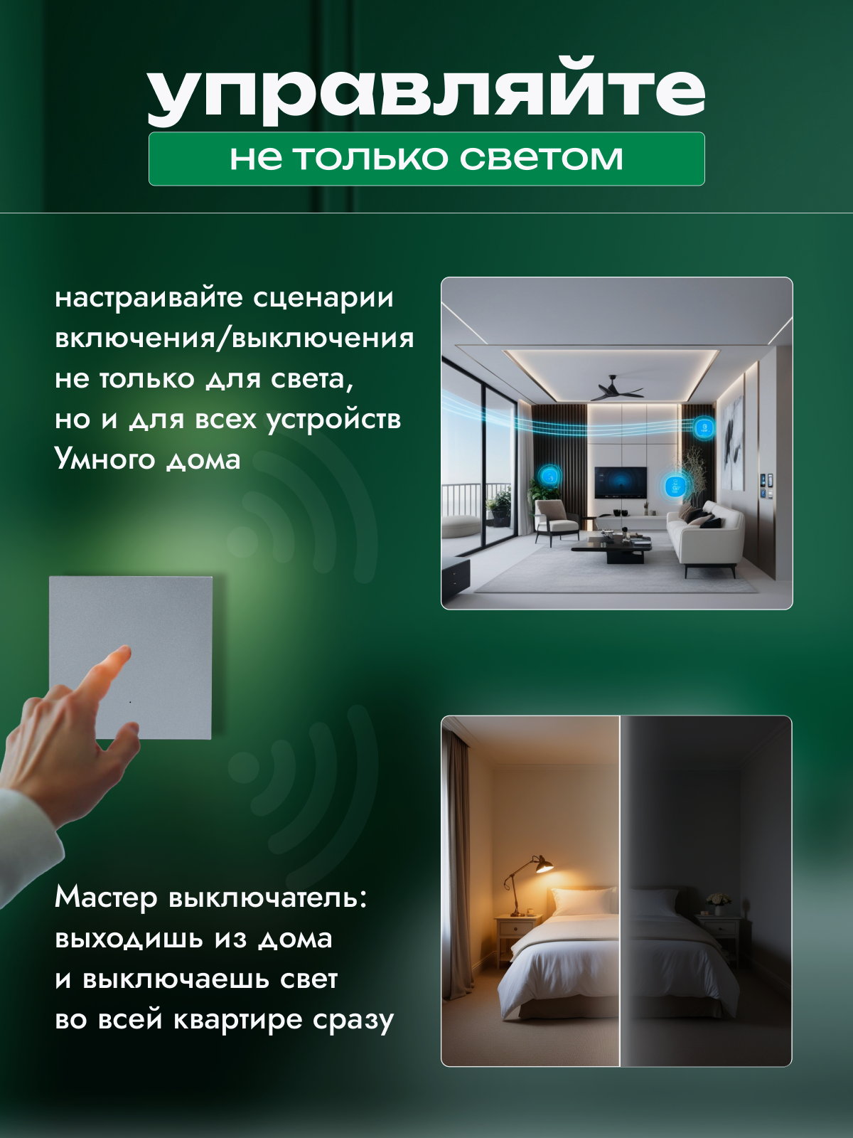 | Дополнительная информация | Универсальный выключатель. Можно подключить как с нулем так и с конденсатором. |