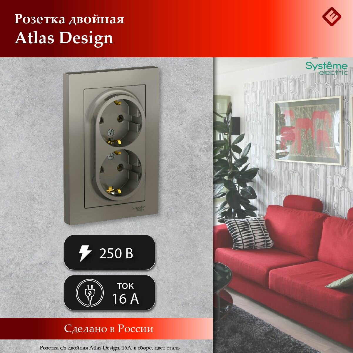 Ниже Вы можете прочитать отзывы на Розетка двойная сталь, с заземлением,16А, в сборе, Schneider Electric AtlasDesign (комплект 2шт), ознакомится с подробными характеристиками, посмотреть интересные обзоры и фотографии на Розетка двойная сталь, с заземлением,16А, в сборе, Schneider Electric AtlasDesign (комплект 2шт).