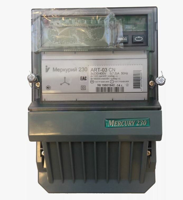Электросчетчик Меркурий 230 ART-03 СN 3*230/400В; 5(7,5)А; кл. т. 0,5S/1,0; Мн. т; CAN; ЖКИ; 3 в интересное:
