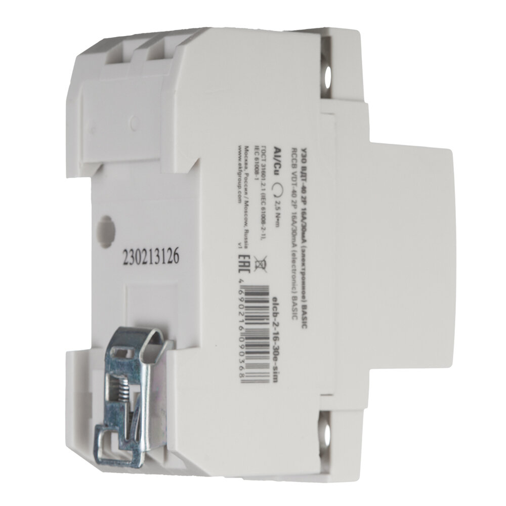 Устройство защитного отключения EKF Basic УЗО двухполюсный 32А/30мА (электронное) elcb-2-32-30e-sim