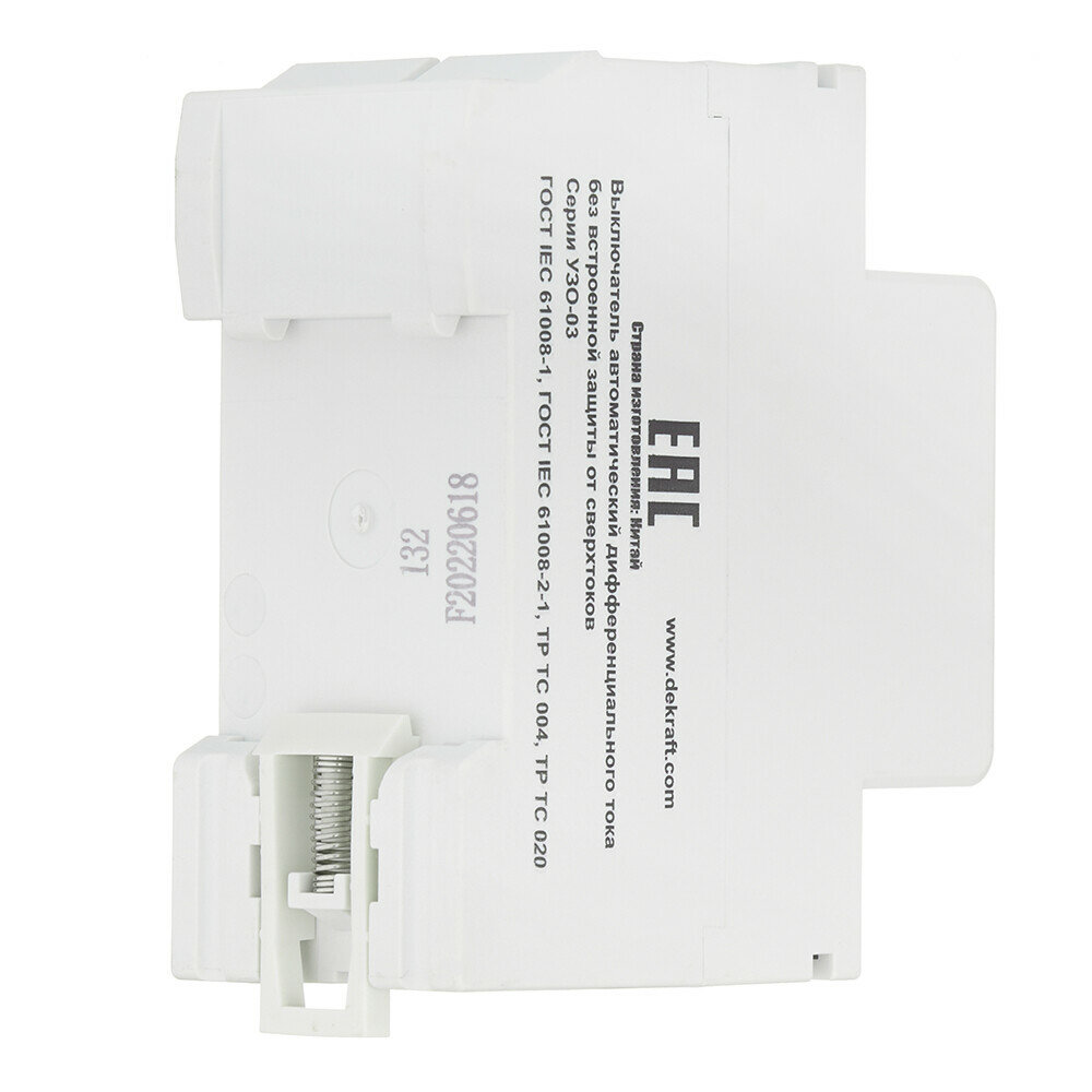| Дополнительная информация | Устройство защитного отключения DEKraft 2P 25А 30мА тип AC 6кА |
