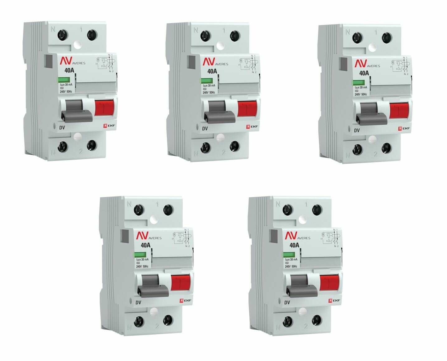 Купить Устройство защитного отключения DV 2P 40А/ 30мА (AC) EKF AVERES 5 штук