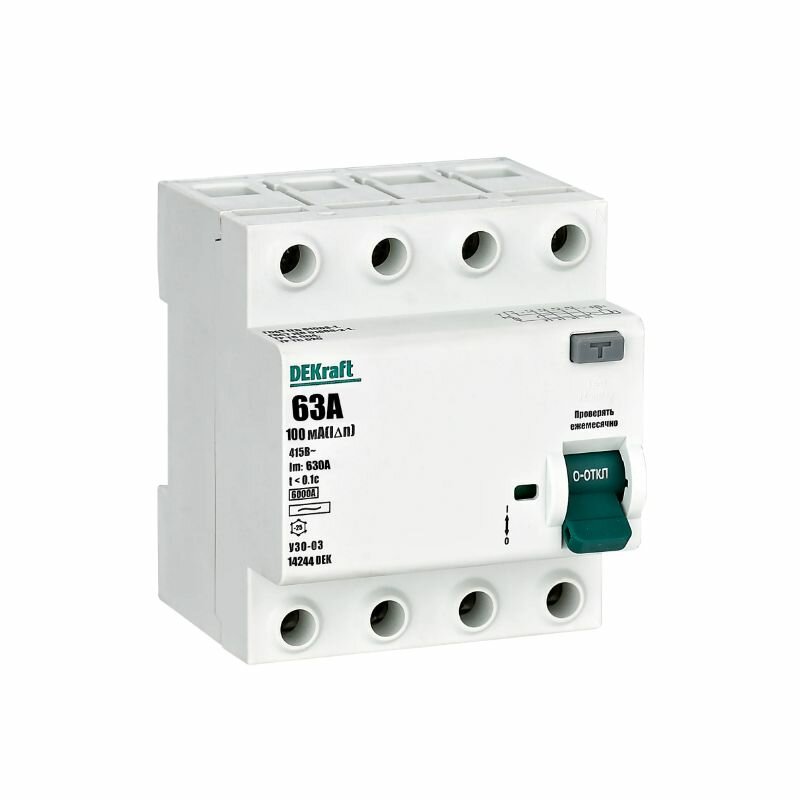 | Дополнительная информация | УЗО Dekraft 4P 63 A 30 мА 6 кА AC 14236DEK |