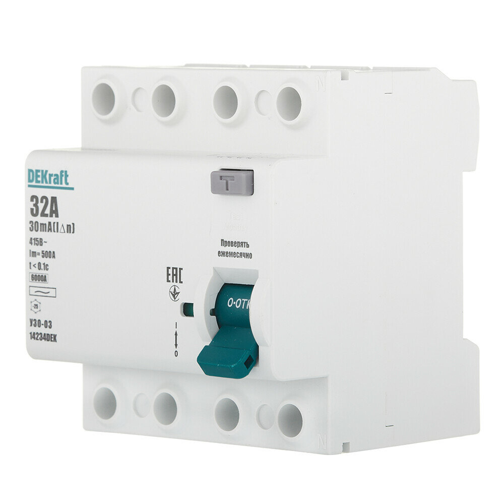 Устройство защитного отключения DEKraft УЗО-03 ВДТ 4P, 32А, 30мА, тип AC, 6кА