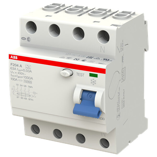 F204 A 63/30 Блок утечки тока 4-полюсный, 63A, 30mA, тип А (УЗО) ABB, 2CSF204101R1630