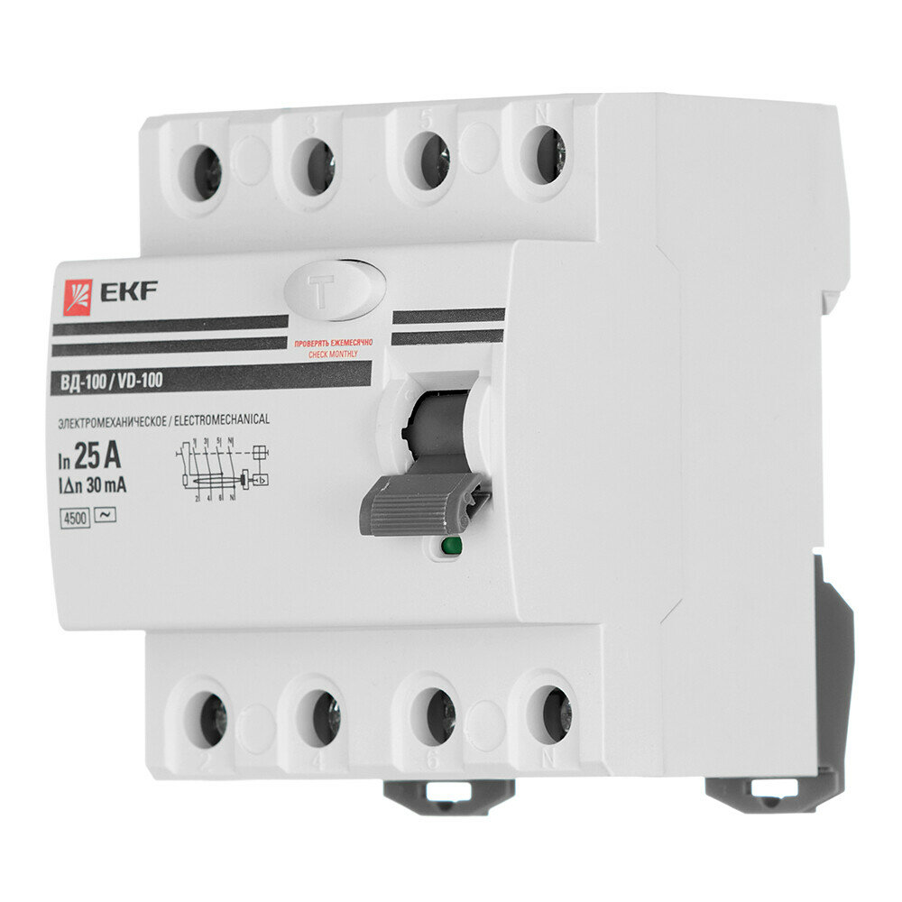 EKF УЗО ВД-100 4P 25А/ 30мА (электромеханическое) PROxima арт. elcb-4-25-30-em-pro