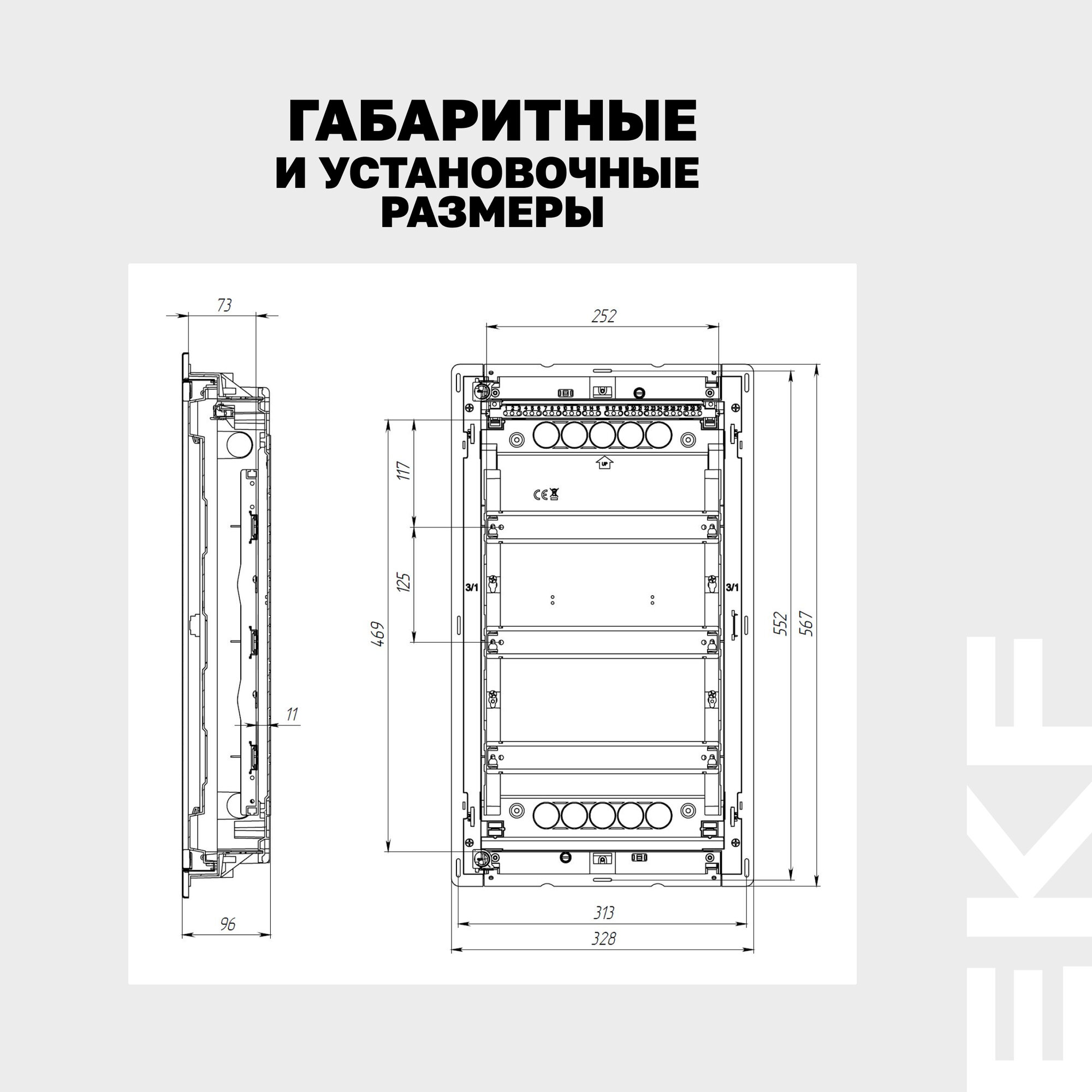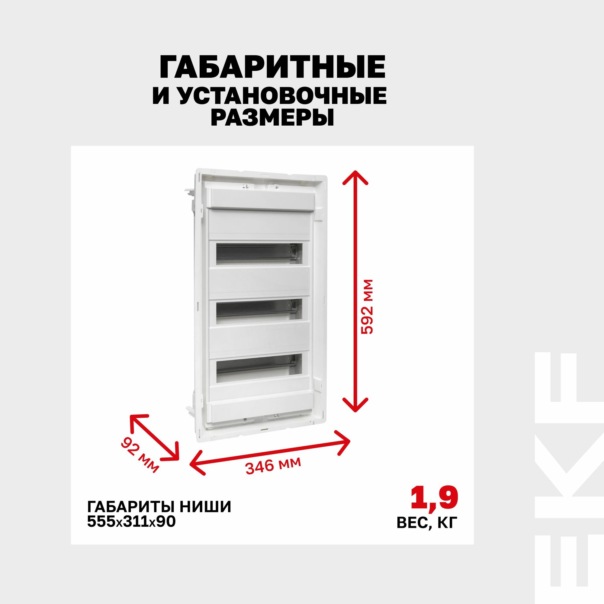 Основание силового щита EKF "Nova", 24 модуля, 2 ряда, 2 DIN-рейки, IP41, 2 габарит, щиток электрический встраиваемый (Дверь приобретается отдельно)