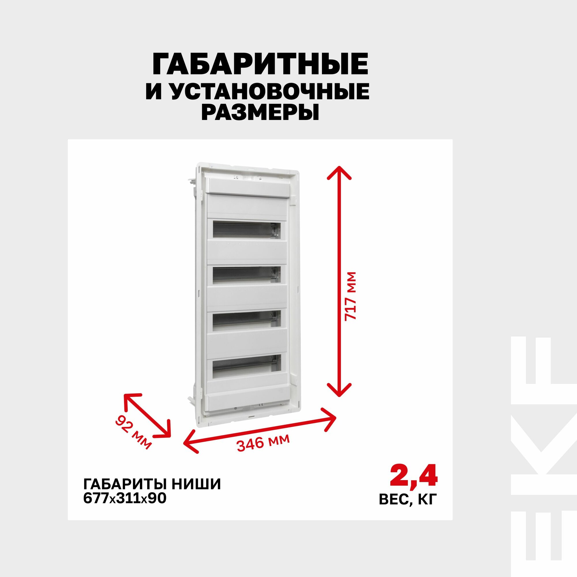 СохранитьОснование силового щита "Nova" на 48 модулей, 4 ряда. 4 DIN-рейки, IP40 EKF 4 габарит, щиток электрический встраиваемый (Дверь приобретается отдельно) интересное: