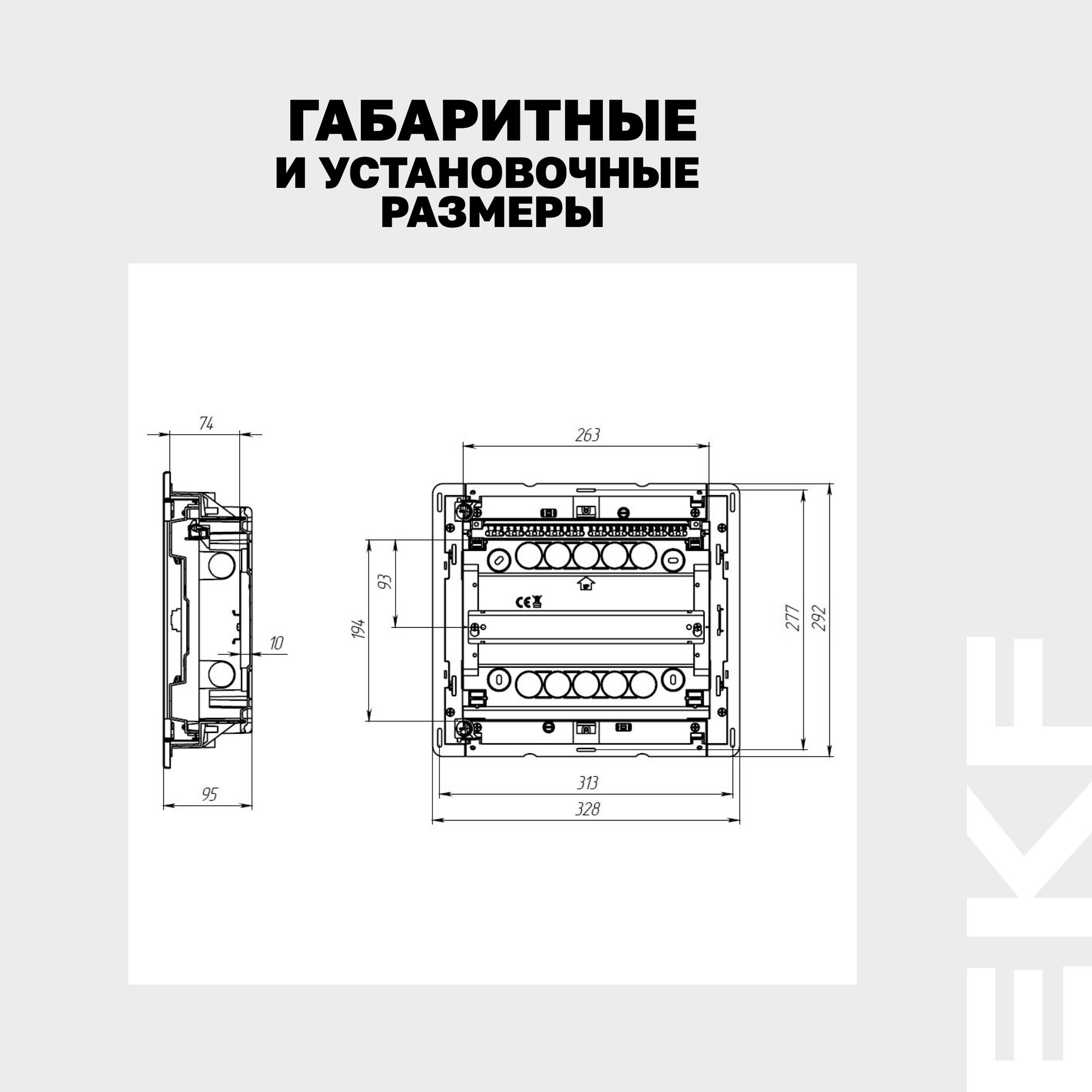 Основание силового щита EKF "Nova", 24 модуля, 2 ряда, 2 DIN-рейки, IP41, 2 габарит, щиток электрический встраиваемый (Дверь приобретается отдельно)