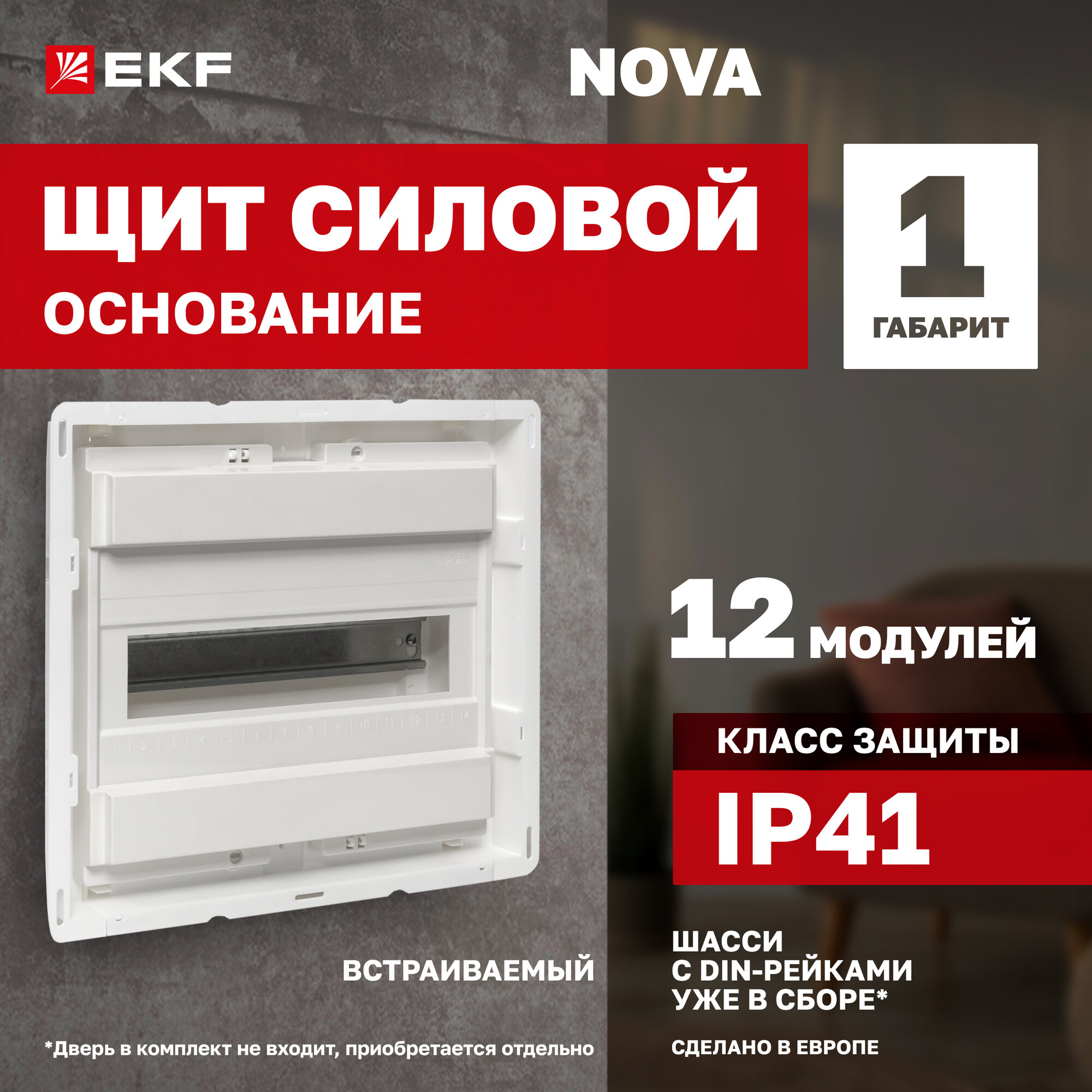 Купить Основание силового щита EKF "Nova", 12 модулей, 1 ряд, 1 DIN-рейка, IP41, 1 габарит, щиток электрический встраиваемый (Дверь приобретается отдельно)
