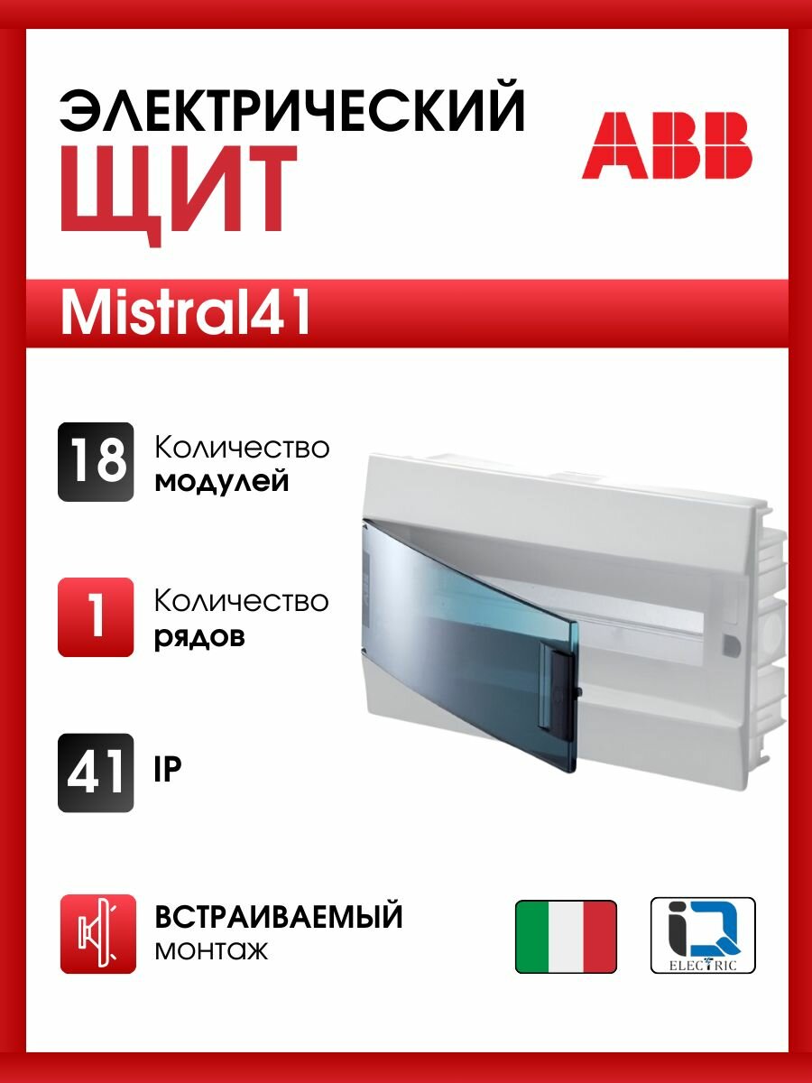 Бокс встраиваемый ABB MISTRAL 41F 18 модулей (1x18) с клеммами, белая дверь 1SLM004102A1104
