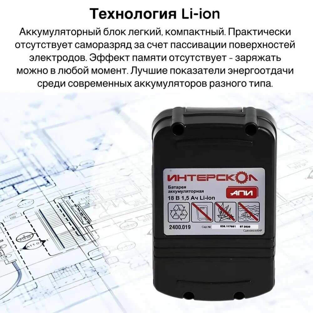 Аккумуляторный слайдерный блок ИНТЕРСКОЛ АПИ-1,5/18, 2400.019, черный интересное: