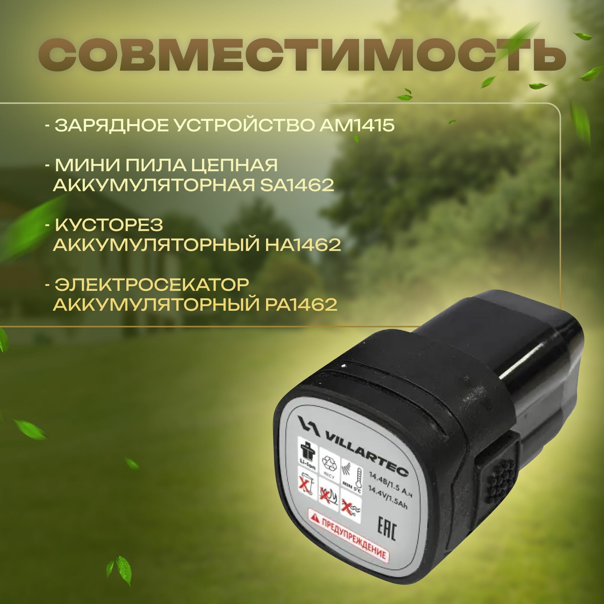 Аккумулятор литий-ионный для садовой техники Li-ion 14 В / VILLARTEC AC1415 интересное: