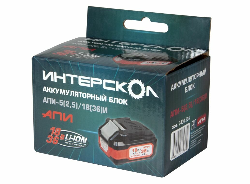Блок аккумуляторный Интерскол АПИ-5/18И (2400.122), 18 В, 5 Ач Li-ion