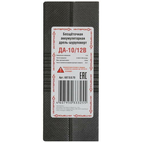 Дрель-шуруповерт аккумуляторная Интерскол ДА-10/12В Мини макс Li-ion картон без аккум. и ЗУ 687.0.0.70