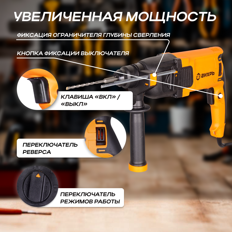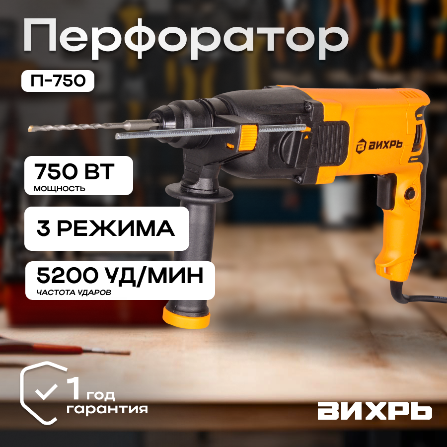 Перфоратор П-850 Вихрь, SDS-Plus, 750 Вт, 2.8 Дж, 1100 об/мин, 5200 уд/мин интересное: