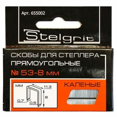 Скобы для степлера тип 53 Stelgrit 8x0,7 мм, мебельные, каленые 1000 шт./уп.