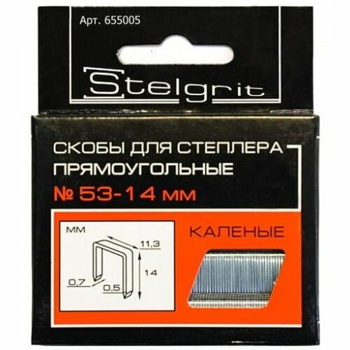 Скобы для степлера тип 53 Stelgrit 14x0,7 мм, мебельные, каленые 1000 шт./уп.