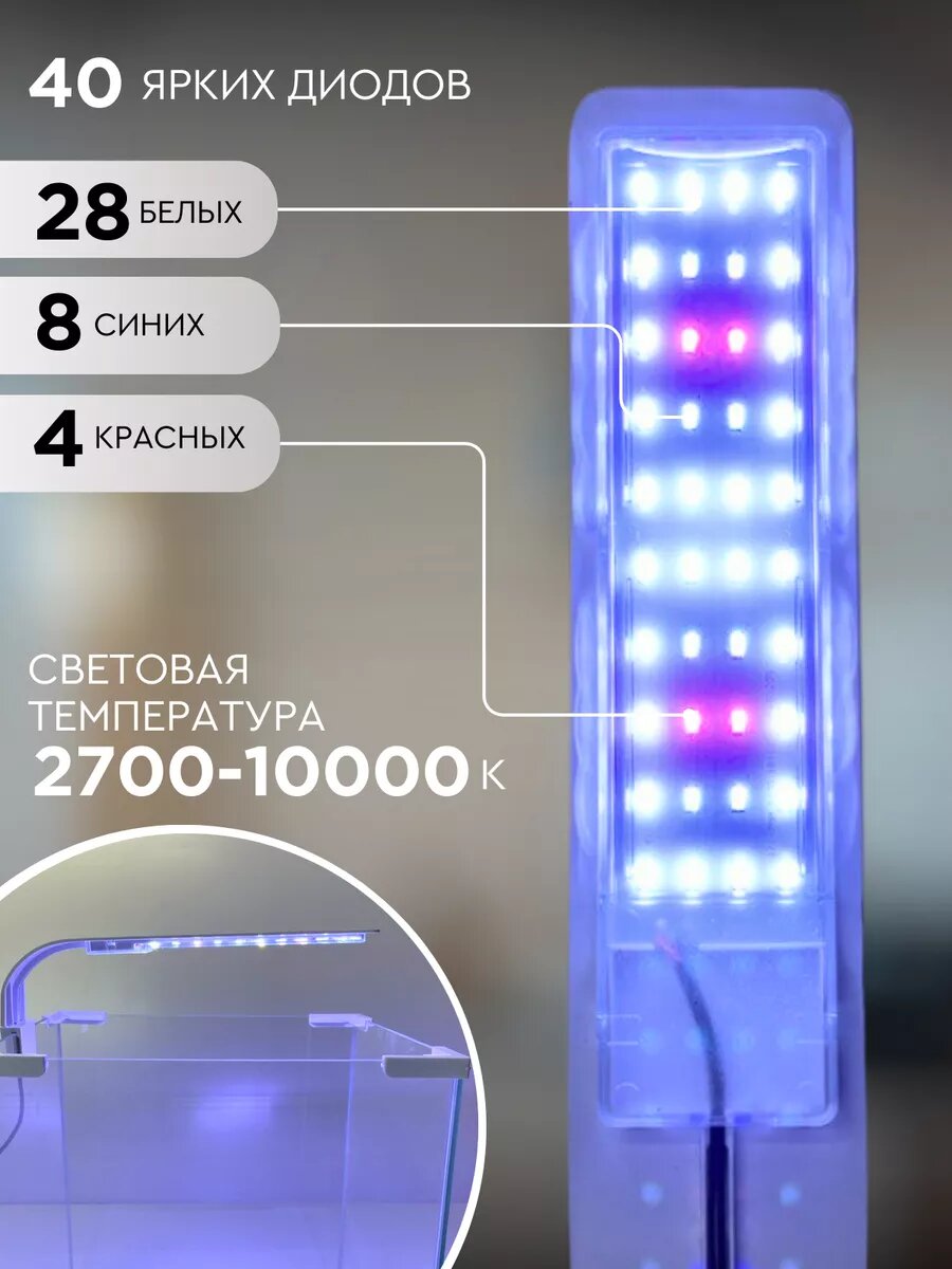Светодиодный светильник для аквариума трехцветный интересное: