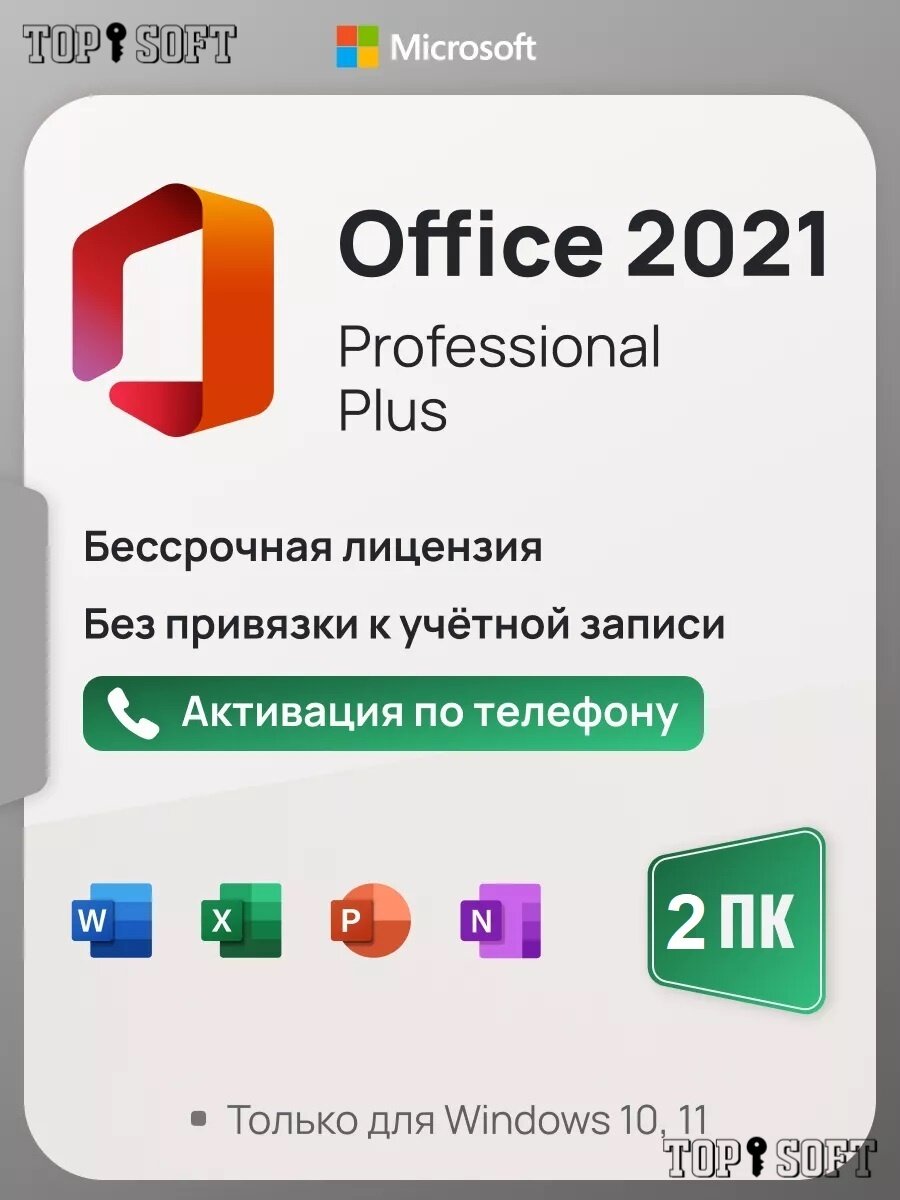 Microsoft Office 2021 Pro Plus ключ активации (На 2 ПК, бессрочная версия, активация по телефону)