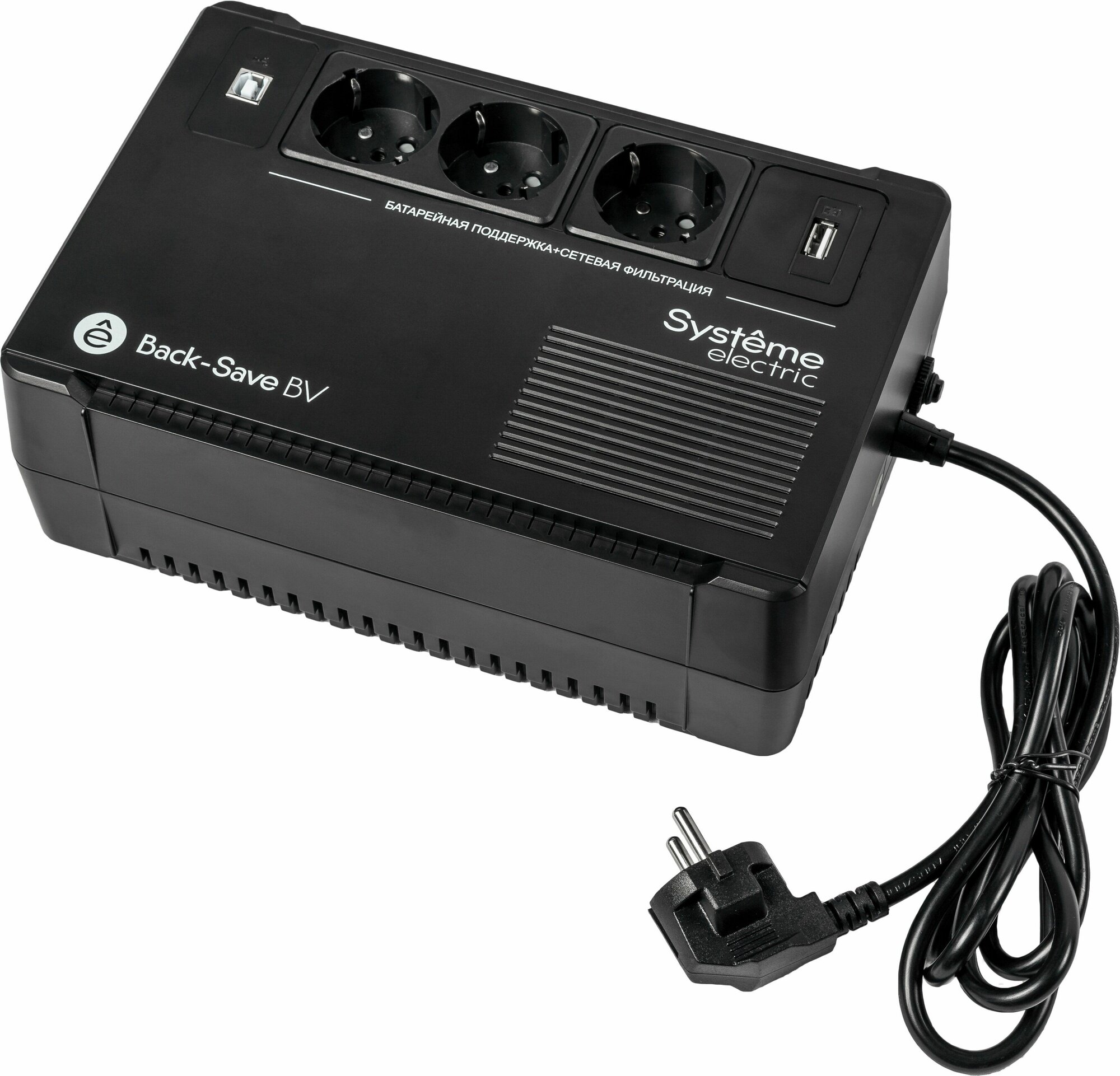 ИБП Systeme Electric Back-Save BV 800VA, 800 VA, 480 Вт, EURO, розеток - 3, USB, черный (BVSE800RS)