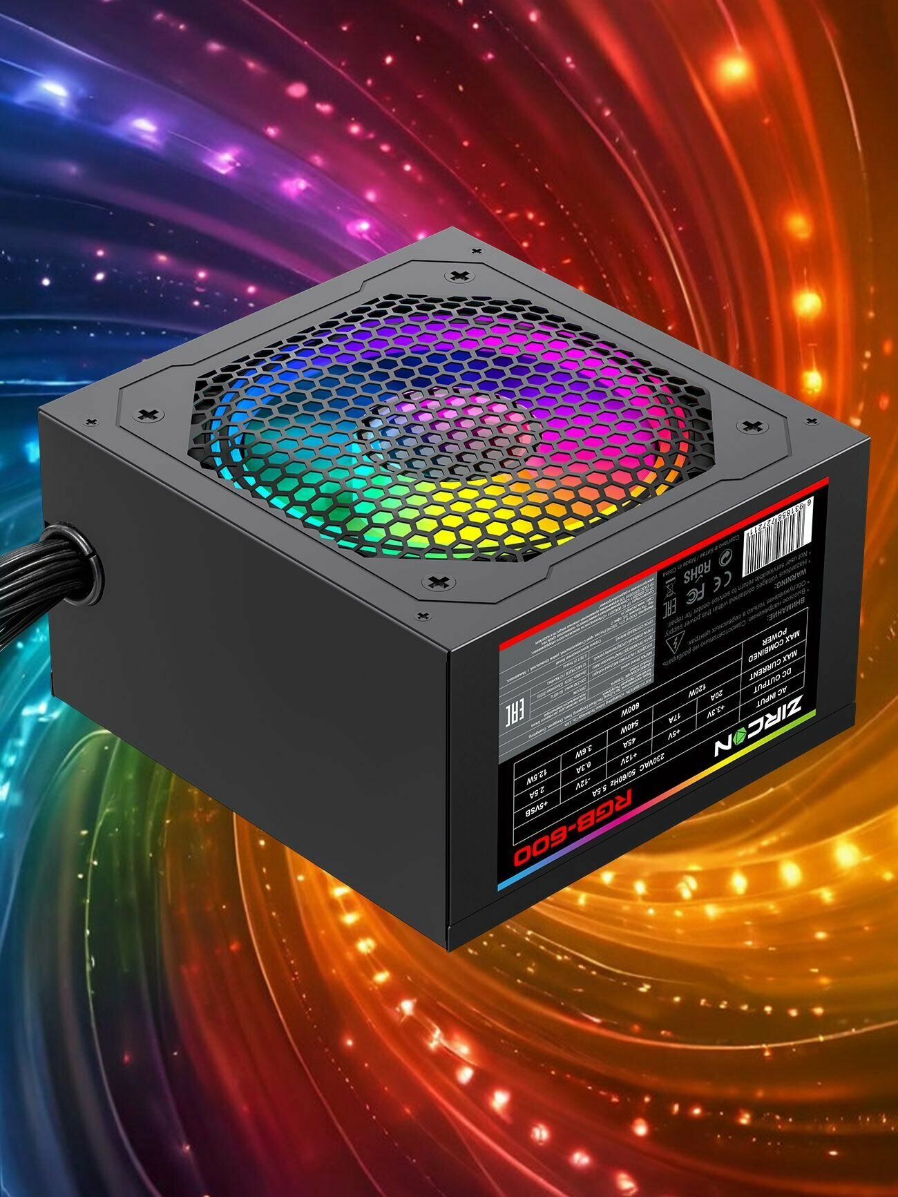Блок питания для ПК 600W ATX ZIRCON RGB-600 Черный 20+4pin 4+4pin 2*6+2pin 6*SATA 3*MOLEX вентилятор 120мм с подсветкой RGB интересное: