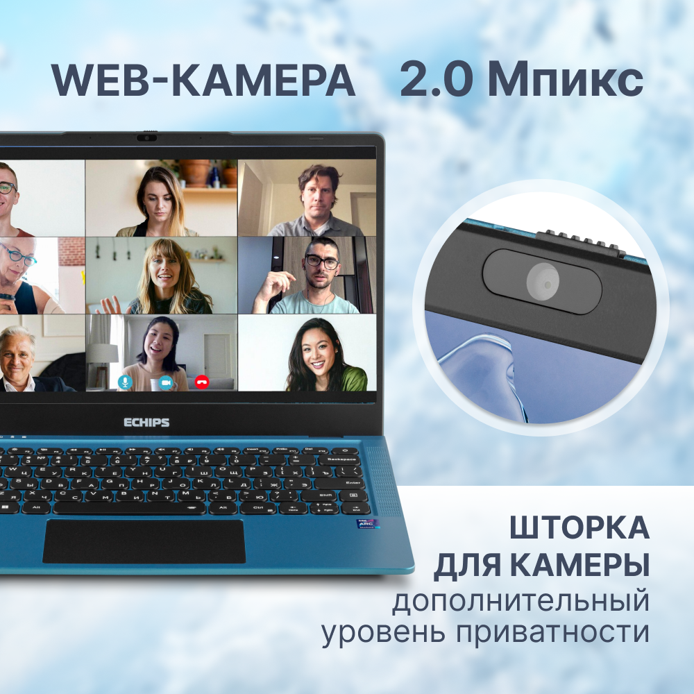 Купить Ноутбук для работы и учебы 15.6" Echips Arctic, Intel Processor N100, RAM 8 ГБ, SSD 256 ГБ, Intel UHD Graphics, Windows Home, синий, Русская раскладка, с подсветкой клавиатуры