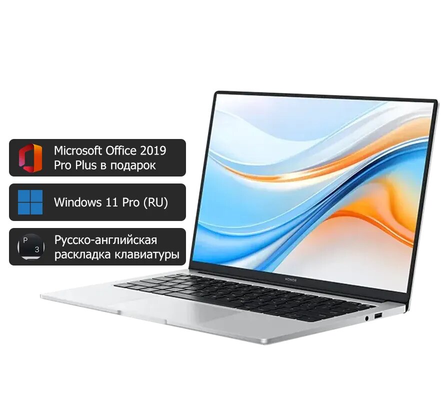 14" Ноутбук Honor MagicBook X 14 Plus, 1920x1200 IPS, AMD Ryzen 7 8845HS (3.8 ГГц), RAM 16 ГБ LPDDR5х, SSD 2048 ГБ, AMD Radeon 780M, Windows 11 Pro +MS Office 2021 Pro, Серебристый, Русская раскладка