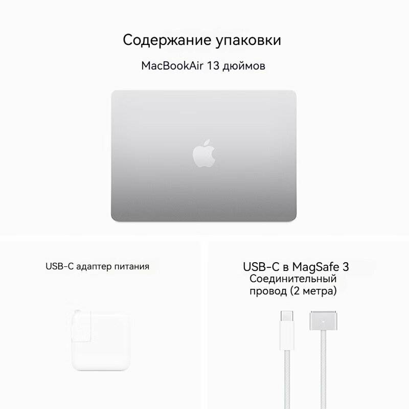 15.3" Ноутбук Apple MacBook Air 15 2024 , RAM 16 ГБ, SSD 512 ГБ, MXD23, Silver, Русская раскладка