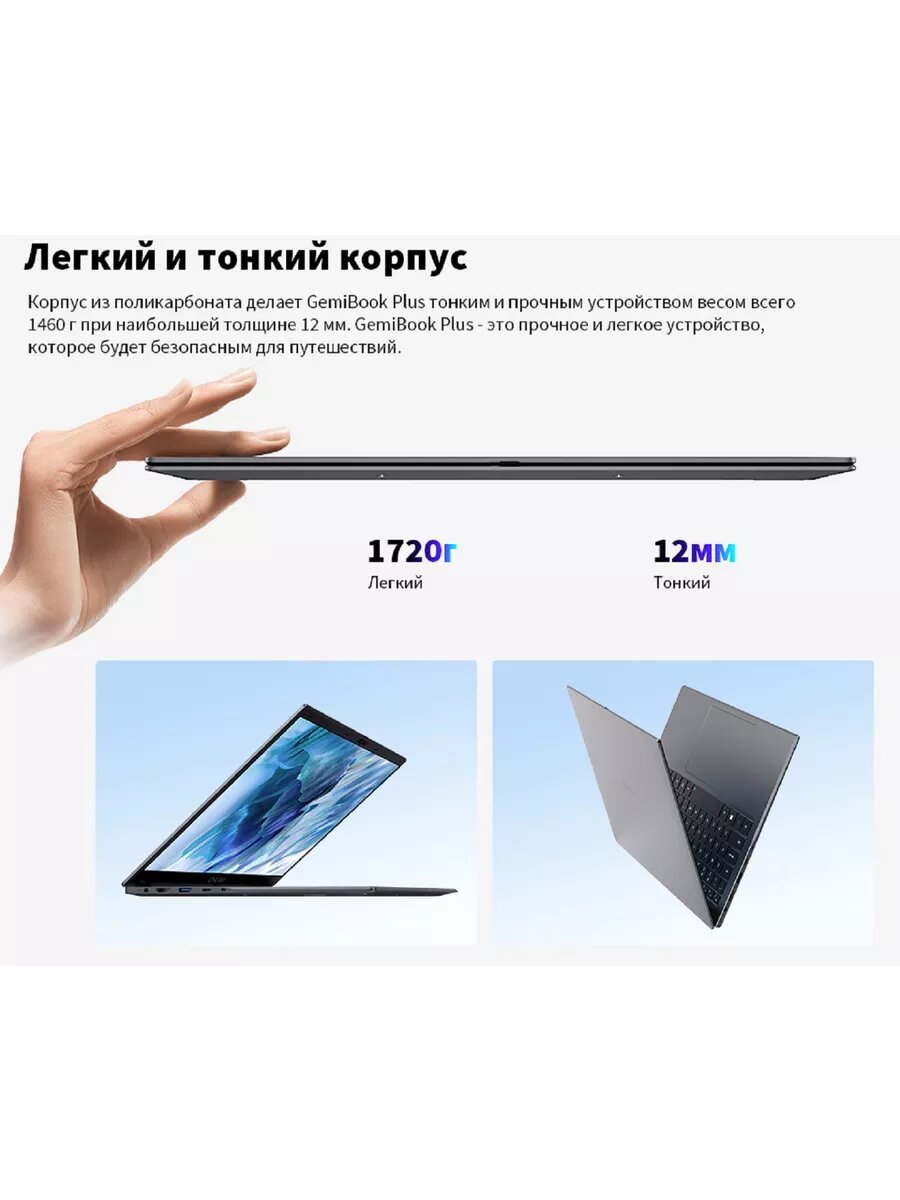 Ноутбук CHUWI GemiBook plus 15.6", IPS, Intel N100 0.8ГГц, 4-ядерный, 16ГБ LPDDR5, 512ГБ SSD, Intel UHD Graphics, Windows 11 Home, серый [1746365]