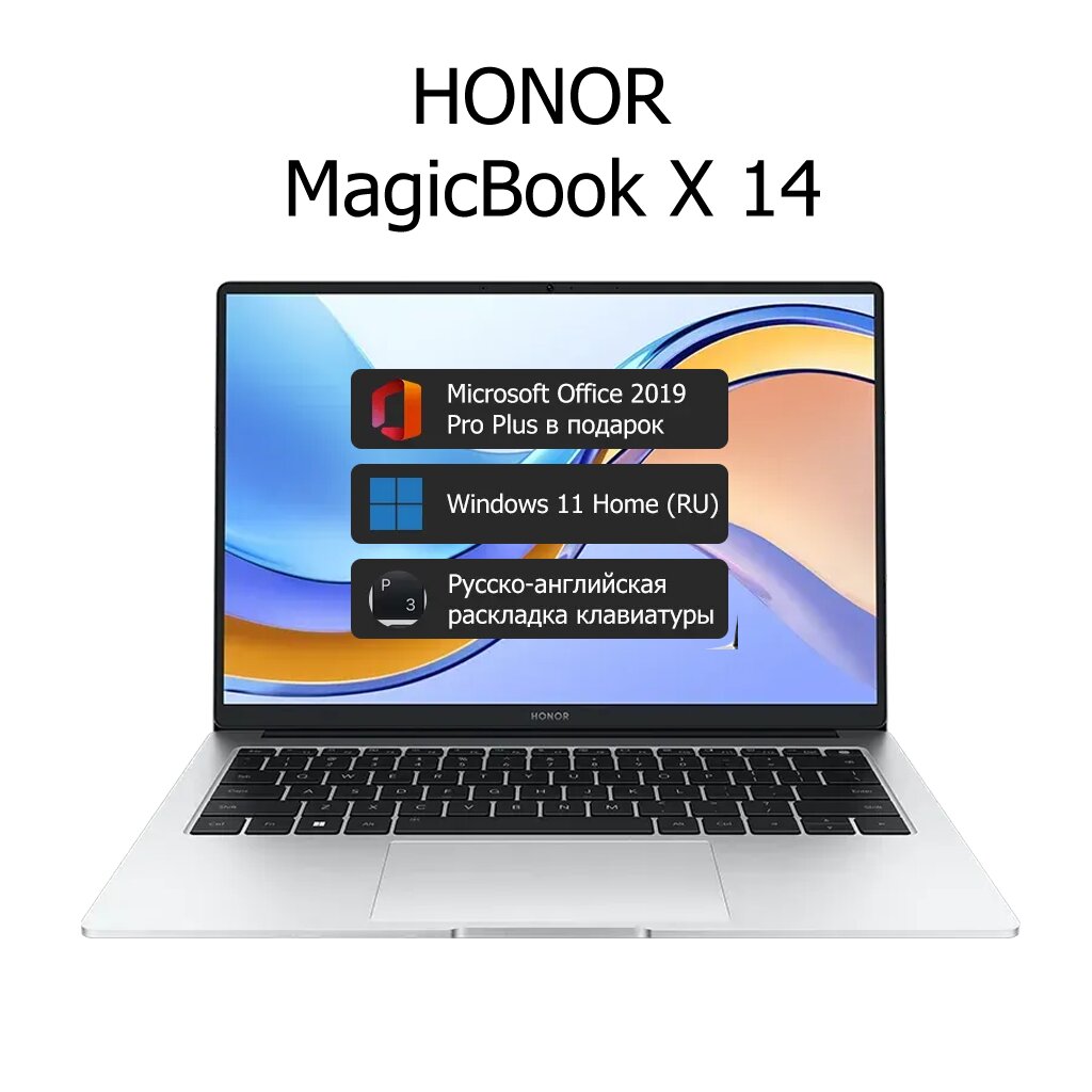 Ноутбук HONOR MagicBook X 14 2023 (Core i5-12450H/14"/1920x1200/16 GB/2048 GB SSD/Intel UHD Graphics/Win 11 Home) Серебристый