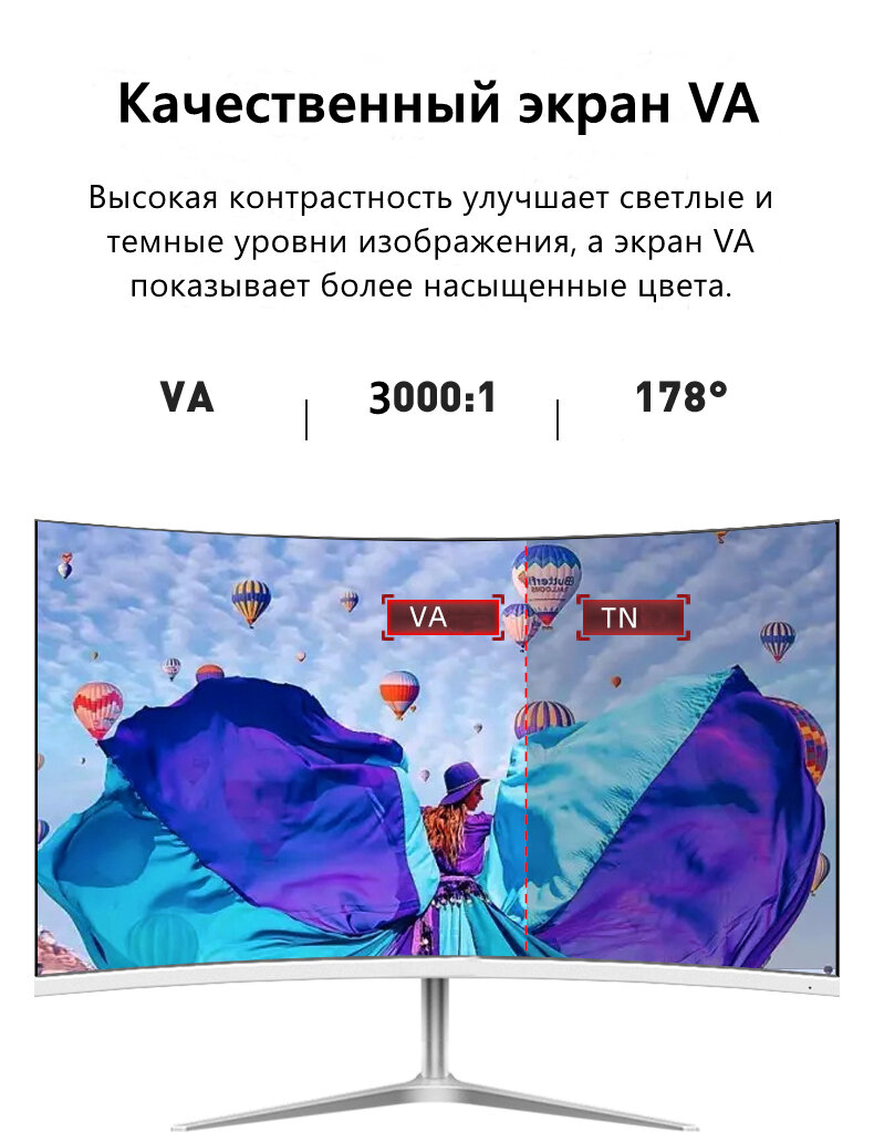 Сохранить27-дюймовый монитор FHD 1080P 75 Гц Изогнутый монитор VA 2800R(0 битых пикселей)99%sRGB 16.7M цветов Free-sync HDMI/VGA интересное: