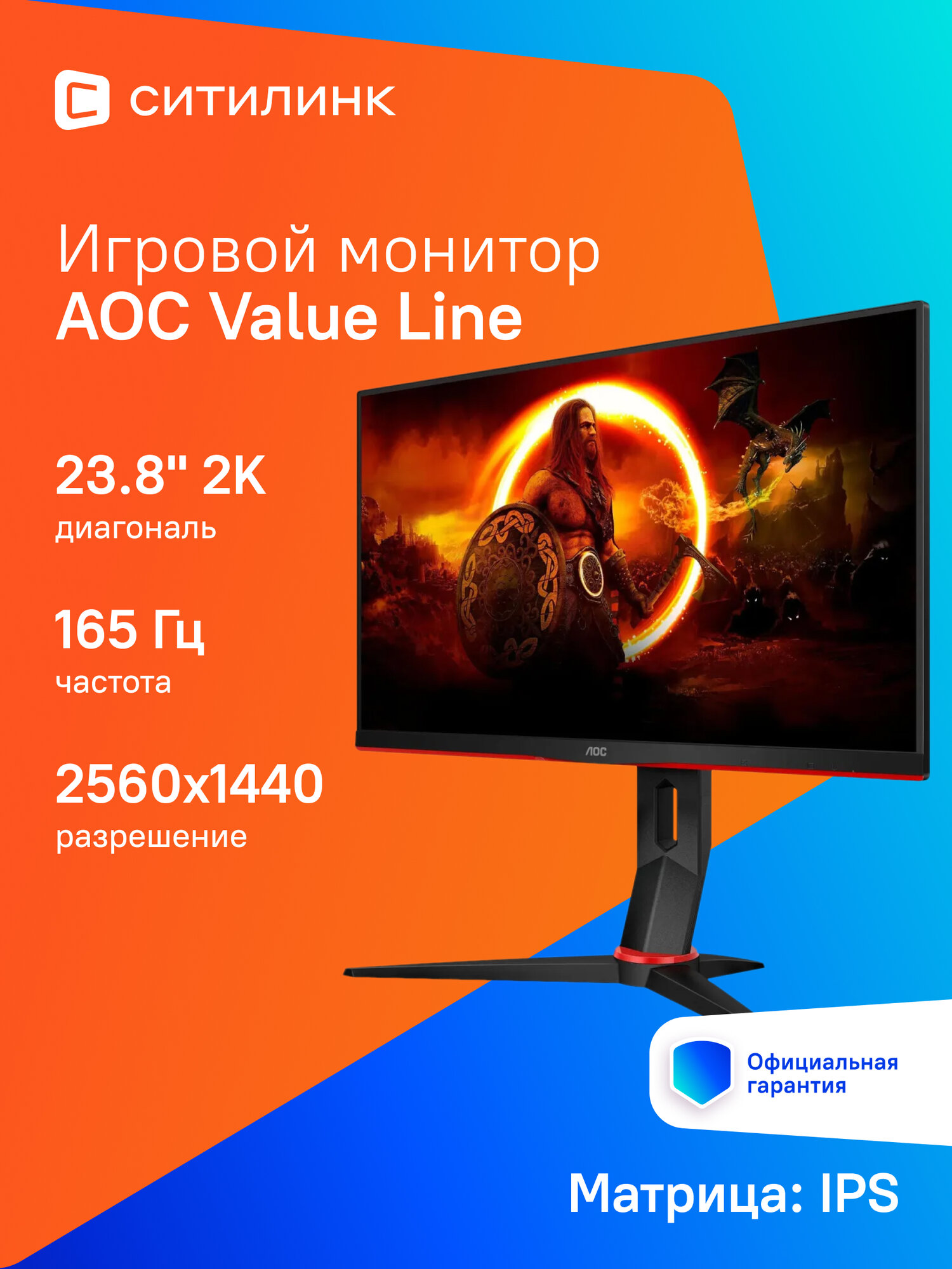 23.8" Монитор AOC Value Line Q24G2A, 2560x1440, IPS, 165Гц, 1хHDMI, 1хDP, черный/красный интересное: