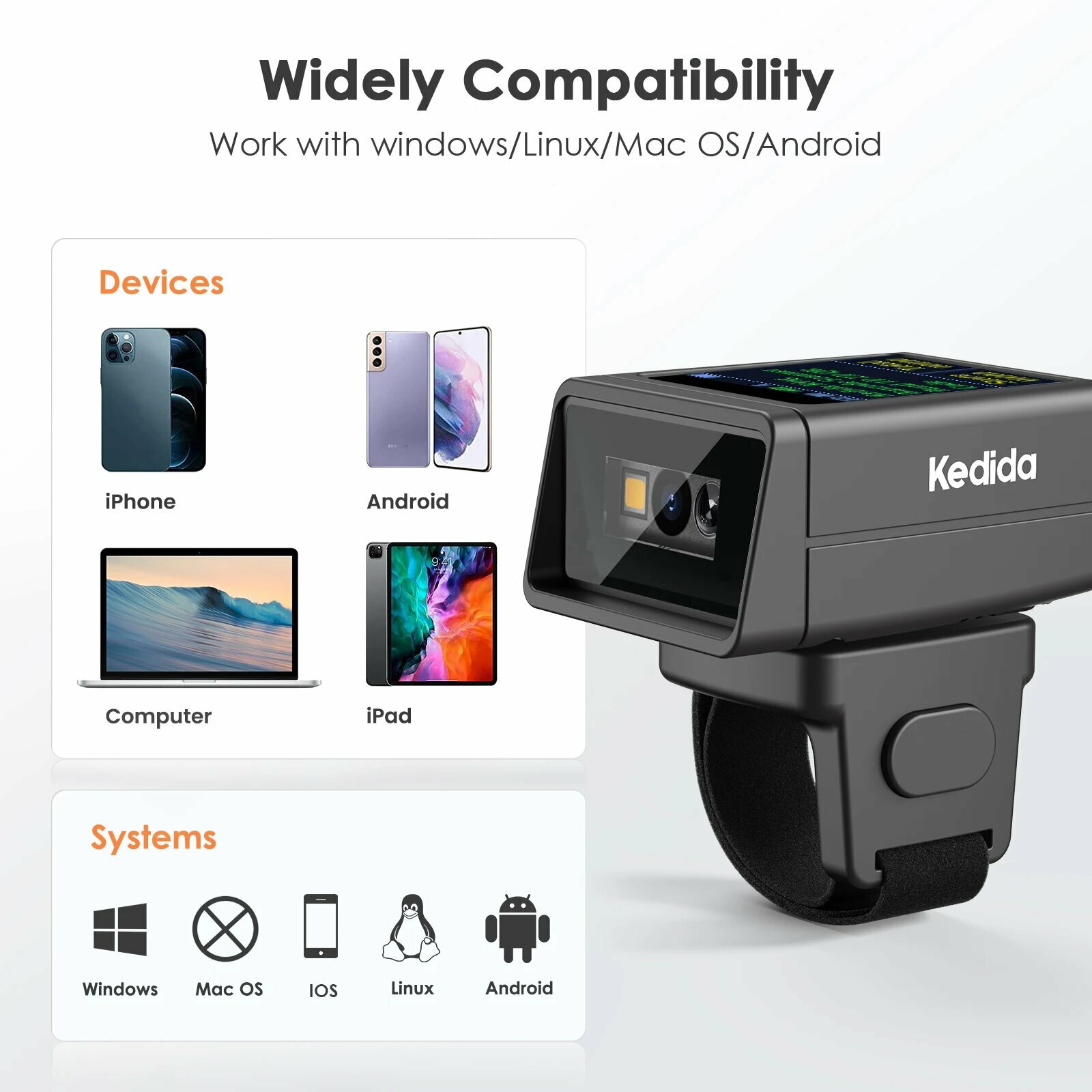Беспроводной кольцевой сканер штрих-кода Bluetooth, 2D Scanner интересное: