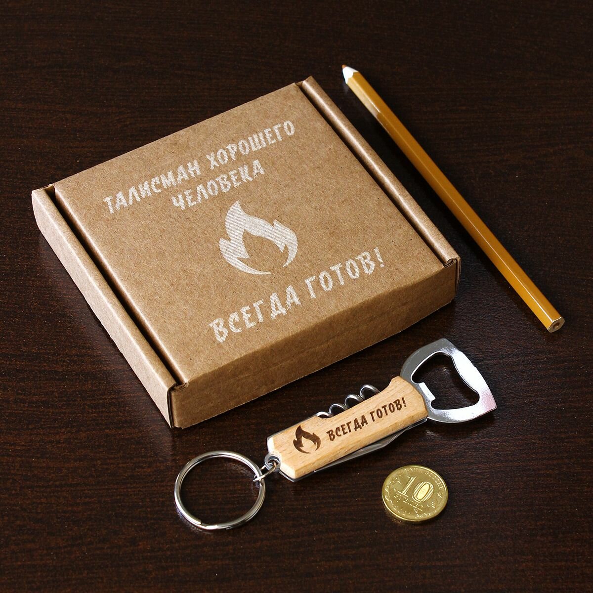 Универсальный мужской брелок - складной нож с гравировкой "Всегда готов!" и "Мы в ответе за тех, кому наливаем" - талисман хорошего человека / Новогодний подарок любимому